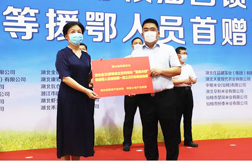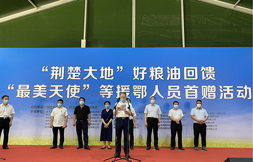 为感恩援鄂人员在湖北疫情抗击中作出的巨大牺牲和突出贡献,顺应广大粮油企业想用最优产品表达感恩之心的热情,经省政府批准,省粮食局、省粮食行业协会组织引导省内粮油加工企业开展了“荆楚大地”好粮油回馈“最美天使”等援鄂人员活动,精选湖北优质特色粮油产品寄赠4.7万余名援鄂人员,首批回馈产品6月15日在汉寄出。此次回馈活动计划持续一年时间,分别在端午节等4个重要时间节点统一寄送。省粮食局、省卫健委、省慈善总会、省粮食行业协会、武汉市发改委(粮食局)、“荆楚大地”产业联盟有关领导,医护人员代表、邮政部门有关负责人、参与捐赠企业代表、新闻媒体记者等参加首赠活动。